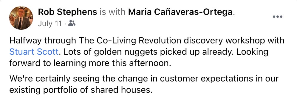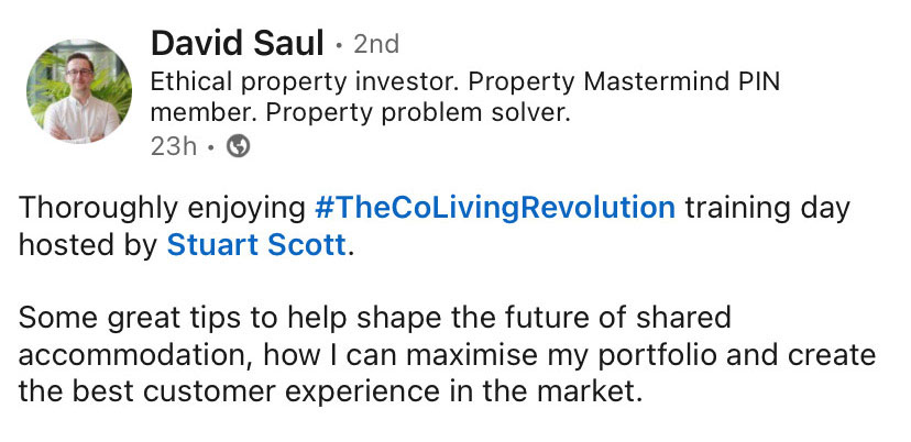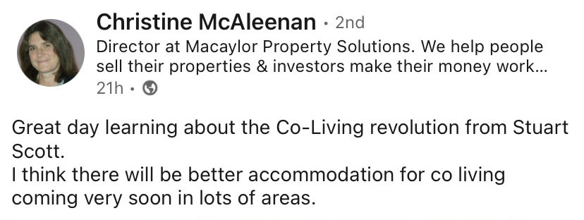 The Co-Living Mastermind is a 6 month mentoring programme providing the knowledge, support and accountability to take your property business to the next level. The mastermind is design for a small group of both new investors looking to replace their income and existing landlords looking to future proof their portfolio. We cover all levels from smaller 4-6 bed Co-Living HMO’s through to Sui Generis 7+ bed Co-Living HMO’s and larger mixed use commercial conversions.