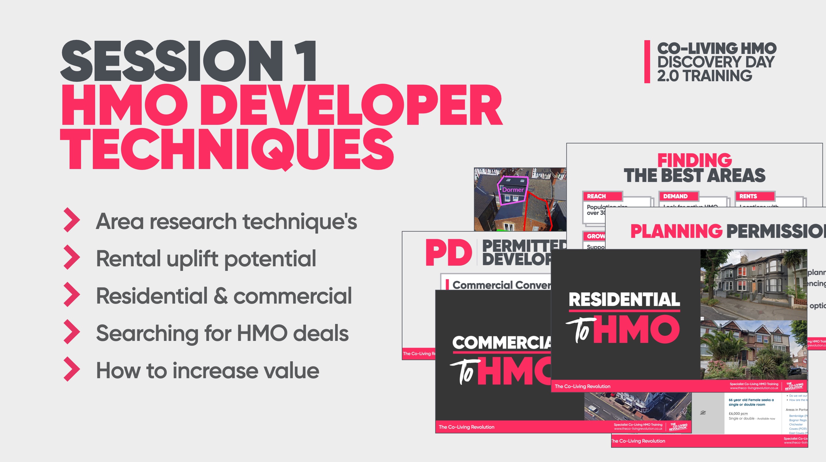 The Co-Living HMO Discovery Day is an interactive 1 day event hosted on Zoom that provides an introduction to design-led Co-Living HMOs. We cover all aspects of finding sites, analysing deals and designing the end product on the day so that by the end of the training you know if Co-Living HMOs is the strategy for you.